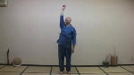 * Lift your arms very slowly without holding your breath (The palm is facing upward). Allow your elbows extended fully so as to feel some pains and small jerky reactions... Find the most economical way to support your arms upright (with the minimum tension). Percevie the shoulder blade supports the arm weight. |