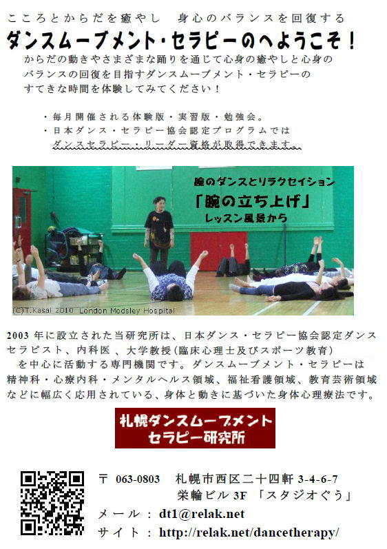 このような観点から、自身の活動をダンスセラピーへと高めて頂ければと願っています。